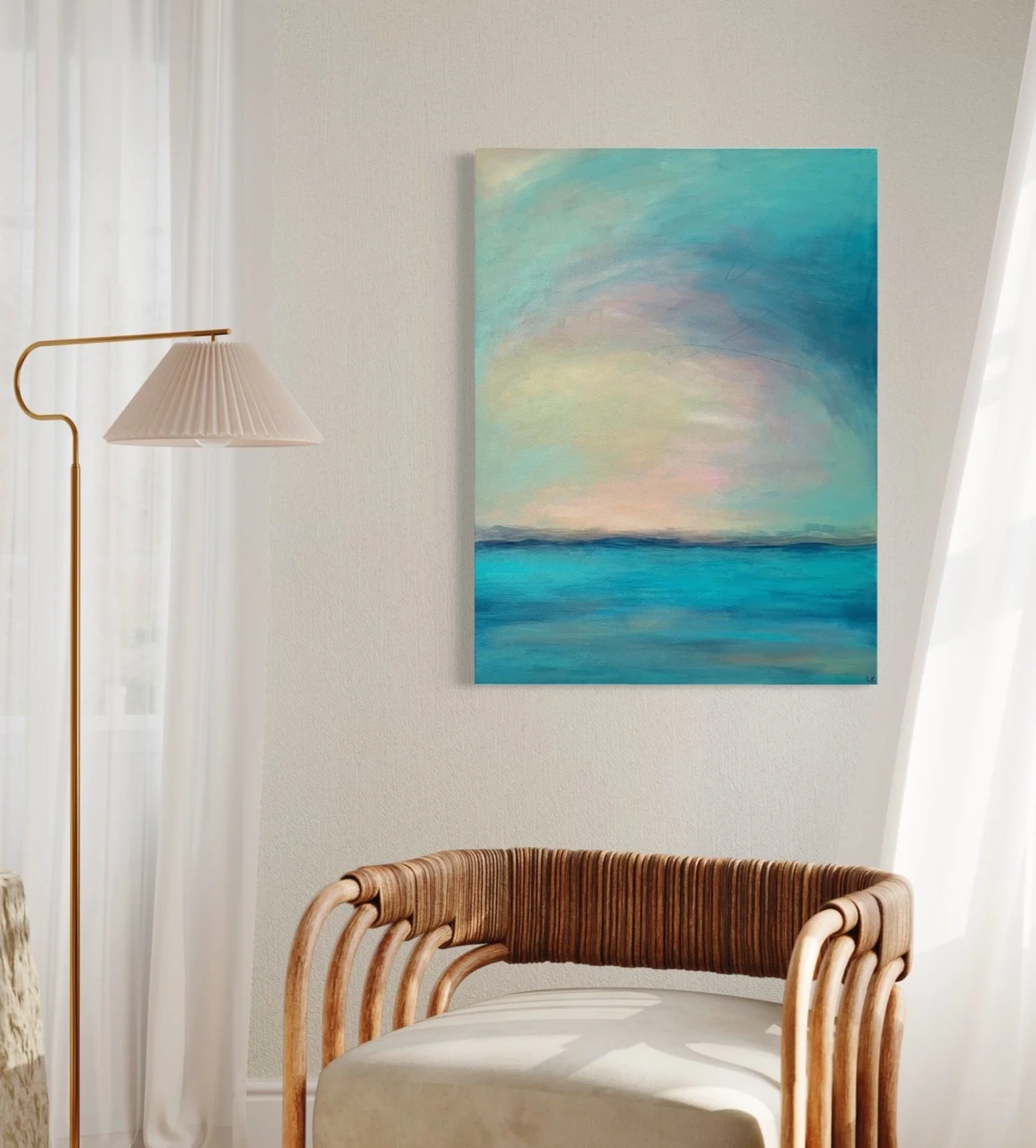 The Rebirth Collection is a series of original abstract landscapes and seascapes that remind us to soften, feel at ease, and appreciate the little moments of peace. This body of work is about welcoming the peace and presence we need so badly.
